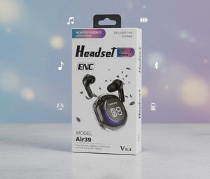Discover the Air 39 LED Display Wireless Earbuds, where premium audio meets cutting-edge design. These exceptional earphones deliver rich, immersive sound quality and provide a comfortable, secure fit for extended listening sessions. A standout feature is the innovative LED display on the charging case, offering instant battery status at a glance and adding a unique, futuristic aesthetic. With reliable Bluetooth connectivity and an ergonomic build, the Air 39 is the perfect companion for music enthusiasts, daily commuters, and active individuals seeking exceptional performance, long-lasting power, and outstanding value in their wireless audio experience.